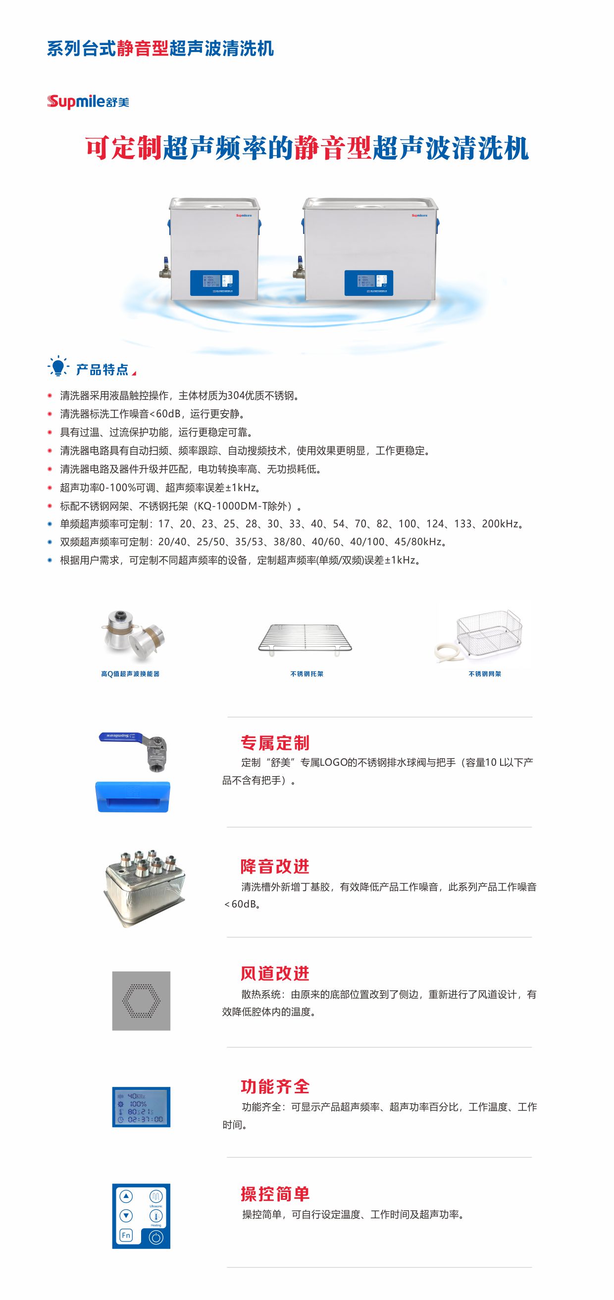 3、定制優(yōu)勢:可根據用戶(hù)需求定制超聲頻率,頻率誤差±1kHz。